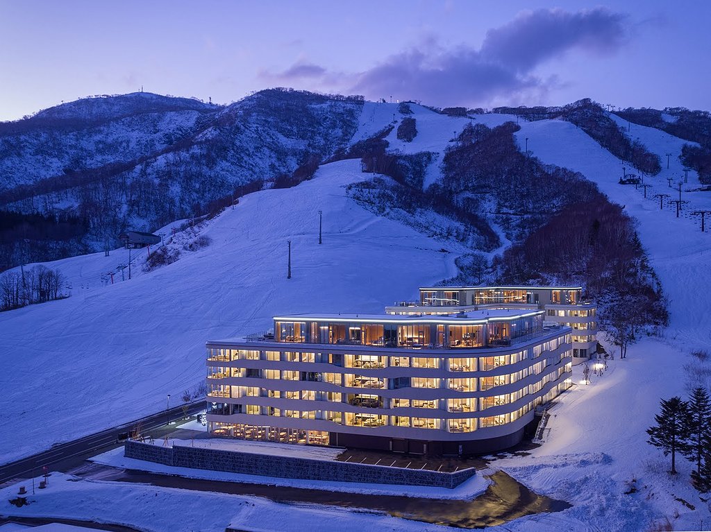 바로 눈 앞에 슬로프가, 요테이산 전망을 한 눈에 담을 수 있는 객실과 유니크 하면서도 자연과의 조화를 아름다운 곳입니다