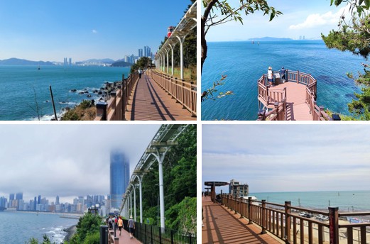 1. 부산 해운대의 새로운 명물산책로 그린레일웨이 – 구 동해남부선 철길을 따라 미포~청사포~송정까지 이어지는 4.8KM의 산책로로 아름다운 해운대 해안의 풍경과 파도소리를 들으며 걷는 최고의 힐링 산책로. 전 구간이 데크로 조성되어 누구나 편안히 걸을 수 있는 길입니다.