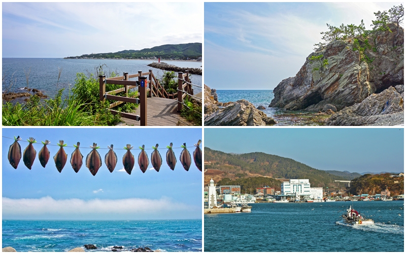 3. 해파랑길 전촌용굴(사룡굴/단용굴)~감포읍 구간 – 해파랑길11구간의 일부로 감포해안의 멋진 주상절리 해안과 절경의 해안동굴들을 보며 산책하는 일정입니다. (첫 10분 정도에서 만나는 짧은 데크계단 외에는 거의 업다운이 없는 평탄하고 완만한 길입니다) 약2.5km, 50분 정도